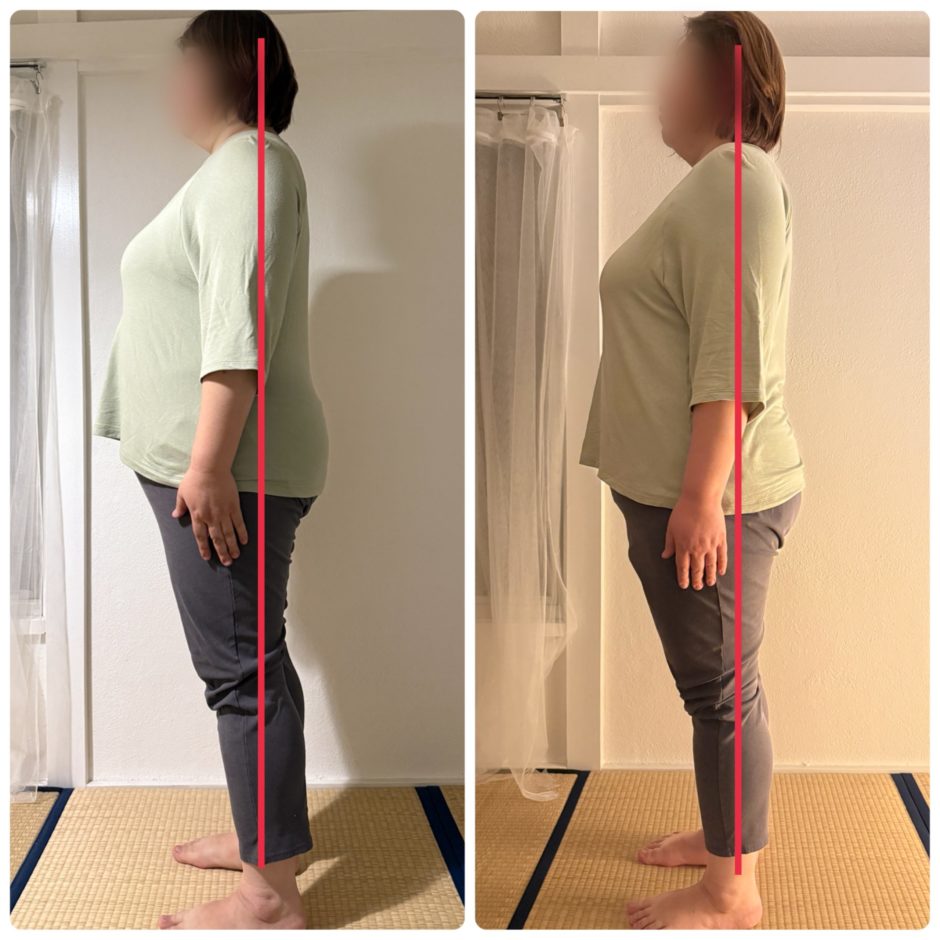 さらに、家での長時間座り仕事や体の使い方の癖(猫背・反り腰・重心の偏り)も積み重なり、膝や足首の柔軟性不足・むくみや冷え・関節のグラつきが慢性化していたと言います。