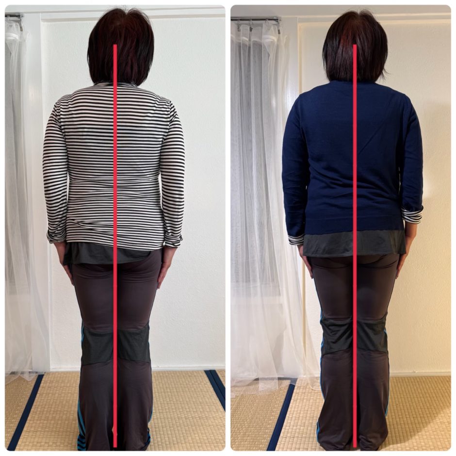 施術後、T様は「変な感じですよね」と違和感を口にしましたが、これは長年の癖で偏っていた重心が正しい位置に戻ったことによる一時的な感覚です。
